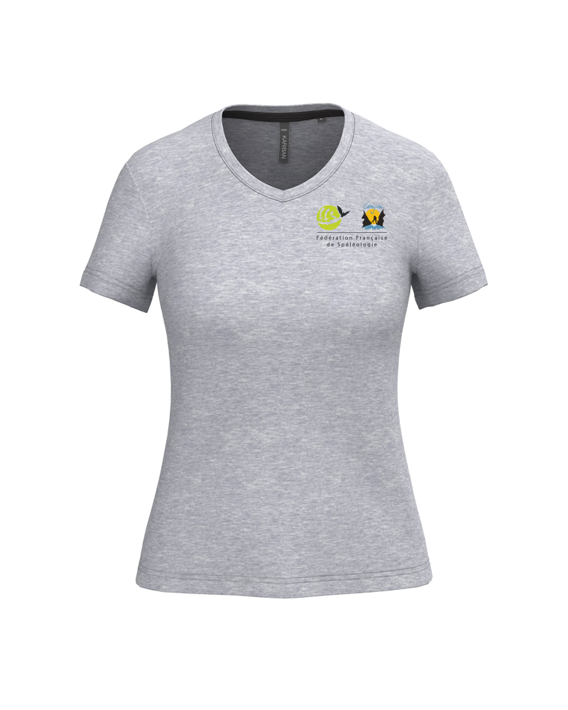 Découvrez le Tee-shirt col V Femme de la Fédération Française de Spéléologie et de Canyon.